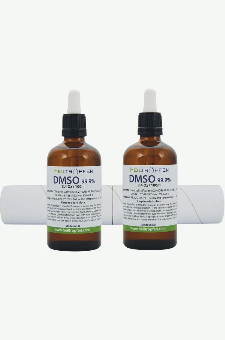 El DMSO puro al 99,9% tiene un estado líquido o sólido/cristalino de la materia, ya que tiene un punto de congelación relativamente alto a 65.1 °F (65,3 ° F), lo que significa que a temperatura ambiente o por debajo de ella es un sólido/cristal, por encima de él es líquido. /En caso de estado cristalino de la materia puede ponerlo en un recipiente ancho o olla con agua caliente (no hervida) y cerrarlo si es posible. El agua no debe ir por encima del cuello de la botella. Después de 30-60 minutos, cambie el agua con una caliente nuevamente. Luego mantenga la botella a temperatura ambiente por encima del punto de fusión. O ponlo en el calentador durante la noche.