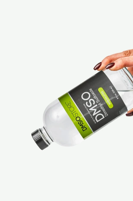 La botella de vidrio utilizada para almacenar nuestros DMSO está fabricada bajo prácticas estrictas para proteger las impurezas en el vidrio que podrían filtrarse en el dimetilsulfóxido. Nuestras botellas se mantienen en condiciones estériles en todo momento durante el almacenamiento y cuando se llenan con DMSO garantizando un producto estéril.