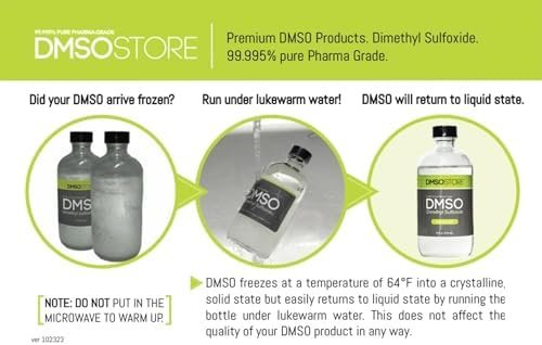 El DMSO se congela a unos 64 grados, esto es normal. Colócalo en agua tibia para descongelarlo, no uses hirviendo ni microondas. Cuando no está completamente congelado, el DMSO puede parecer cristal.