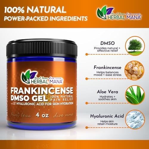 Alivio específico de acción rápida: DMSO es un ingrediente de absorción de acción rápida que acelera el tiempo de alivio mientras alivia naturalmente los dolores. El DMSO se puede aplicar directamente sobre la piel o diluirse para dosis más débiles, lo que permite un alivio específico.
